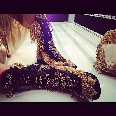 G-Dragon a Big Bang vezetője frissítette twitterét egy újabb képpel, mely, a hamarosan megjelenő zenei videójában lesz látható. "4. nap, látom a célt" - kommentelte a képet. A képen cipőjét láthatjuk, valamint ruhájából egy részletet. Ahogy a kép is mutatja, gazdagon díszítet színes és arany színnel, fekete alapon.
